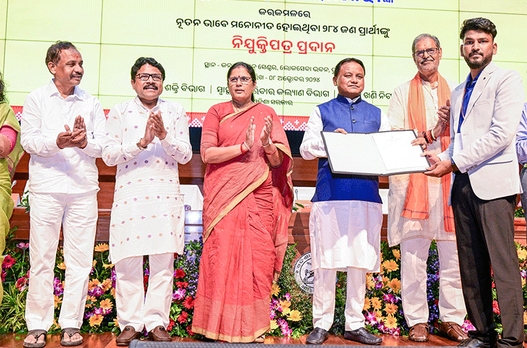 ଆଜି ରାଜ୍ୟ ସରକାରଙ୍କ ତିନୋଟି ପ୍ରମୁଖ ବିଭାଗ ଯଥା- ଶକ୍ତି ବିଭାଗ, ସ୍ବାସ୍ଥ୍ୟ ଓ ପରିବାର କଲ୍ୟାଣ ବିଭାଗ ଏବଂ ଇସ୍ପାତ ଓ ଖଣି ବିଭାଗ ଅଧିନସ୍ଥ ଓଡିଶା ଖଣି ନିଗମରେ ୨୮୨ଜଣ ନବ ନିଯୁକ୍ତ ଅଧିକାରୀ ଓ କର୍ମଚାରୀଙ୍କୁ ରାଜ୍ୟ ସରକାରଙ୍କ ପକ୍ଷରୁ ନିଯୁକ୍ତି ପ୍ରଦାନ କରାଯାଇଛି। ଏଥିରେ ଶକ୍ତି ବିଭାଗରେ ୭୯ ଜଣ ସହକାରୀ ନିର୍ବାହୀ ଯନ୍ତ୍ରୀ ନିଯୁକ୍ତି ପାଇଥିବା ବେଳେ ସ୍ବାସ୍ଥ୍ୟ ବିଭାଗରେ ଭେଷଜ ନିୟନ୍ତ୍ରଣ ନିର୍ଦ୍ଦେଶକଙ୍କ ଅଧିନରେ ୩୧ ଜଣ ଜୁନିୟର କ୍ଲର୍କ କମ ଟାଇପିଷ୍ଟ, ଆୟୁଷ ନିର୍ଦ୍ଦେଶକଙ୍କ ଅଧିନରେ ୧୯ ଜଣ ଆୟୁର୍ବେଦ ଅଧ୍ୟାପକ ଓ ସ୍ବାସ୍ଥ୍ୟ ବିଜ୍ଞାନ ବିଶ୍ବ ବିଦ୍ୟାଳୟରେ ୫୪ ଜଣ କନିଷ୍ଠ ସହାୟକ ନିଯୁକ୍ତି ପାଇଛନ୍ତି ଏବଂ ସେହିପରି ଓଡିଶା ଖଣି ନିଗମରେ କନିଷ୍ଠ ଯନ୍ତ୍ରୀ ମେକାନିକାଲ ୧୯, କନିଷ୍ଠ ଯନ୍ତ୍ରୀ ଇଲେକ୍ଟ୍ରିକାଲ ୧୪, କନିଷ୍ଠ ଯନ୍ତ୍ରୀ ସିଭିଲ ୧୬, କନିଷ୍ଠ ଫାର୍ମାସିଷ୍ଟ ୯ ଏବଂ ଇଲେକ୍ଟ୍ରିସିଆନ ୩୦ ଜଣଙ୍କୁ ନିଯୁକ୍ତି ମିଳିଛି।