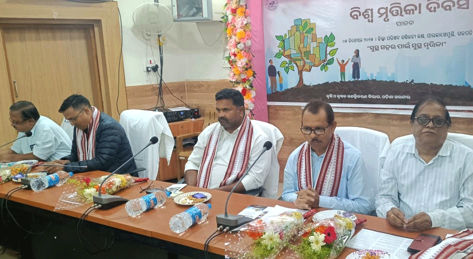 ପାରଳାଖେମୁଣ୍ଡି : ଗଜପତି ଜିଲ୍ଲା ସଦର ମହକୁମା ପାରଳାଖେମୁଣ୍ଡି ସ୍ଥିତ ଜିଲ୍ଲା ପରିଷଦ ସମ୍ମିଳନୀ କକ୍ଷ ଠାରେ ଜିଲ୍ଲାସ୍ତରୀୟ ବିଶ୍ଵ ମୃତ୍ତିକା ଦିବସ ପାଳିତ ହୋଇଯାଇଅଛି। ଏହି ଦିବସରେ ଏମ.ପ୍ରକାଶ ରାଓ,ଜିଲ୍ଲା ମୁଖ୍ୟ କୃଷି ଅଧିକାରୀ ଗଜପତିଙ୍କ ଅଧ୍ୟକ୍ଷତାରେ ଅନୁଷ୍ଠିତ ବୈଠକରେ ସମ୍ମାନିତ ଅତିଥି ଭାବରେ ଗୋଷାଣୀ ଜିଲ୍ଲାପରିଷଦ ସଭ୍ୟ ଏସ୍.ବାଲରାଜୁ,ଅତିରିକ୍ତ ଜିଲ୍ଲା କୃଷି ଅଧିକାରୀ ପାରଳାଖେମୁଣ୍ଡି ରବୀନ୍ଦ୍ର କୁମାର ଆଧେକ୍, ଅତିରିକ୍ତ ଜିଲ୍ଲା କୃଷି ଅଧିକାରୀ ଆର.ଉଦୟଗିରି ଶ୍ରୀଯୁକ୍ତ ବିରଞ୍ଚି ନାରାୟଣ ମଙ୍ଗରାଜ,ପ୍ରକଳ୍ପ ନିର୍ଦ୍ଧେଶକ, ମୂର୍ତ୍ତିକା ସଂରକ୍ଷଣ ଓ ଜଳ ବିଭାଜିକା ଗଜପତି ଶ୍ରୀଯୁକ୍ତ ସୁରେଶ କୁମାର ପଟ୍ଟନାୟକ , ଉପନିର୍ଦ୍ଦେଶକ ଉଦ୍ୟାନ ଶ୍ରୀ ଶଶାଙ୍କ ଶେଖର ପଟ୍ଟନାୟକ, କୃଷି ବିଜ୍ଞାନ କେନ୍ଦ୍ରର ବରିଷ୍ଠ ବୈଜ୍ଞାନିକ ଶ୍ରୀ ସଂଗ୍ରାମ ପରମ ଗୁରୁ ପ୍ରମୁଖ ମଞ୍ଚାସିନ ଥିଲେ।